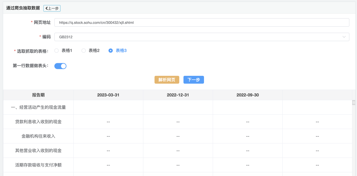 7.数据抽取增加爬虫功能,从网络上爬取相关数据。