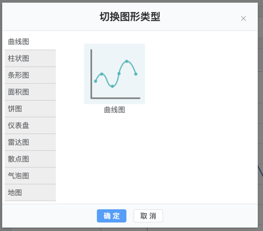 1.在多维分析页面选择图形选项卡,系统默认显示为曲线图,点击切换图形类型按钮,系统弹出图形选择面板。