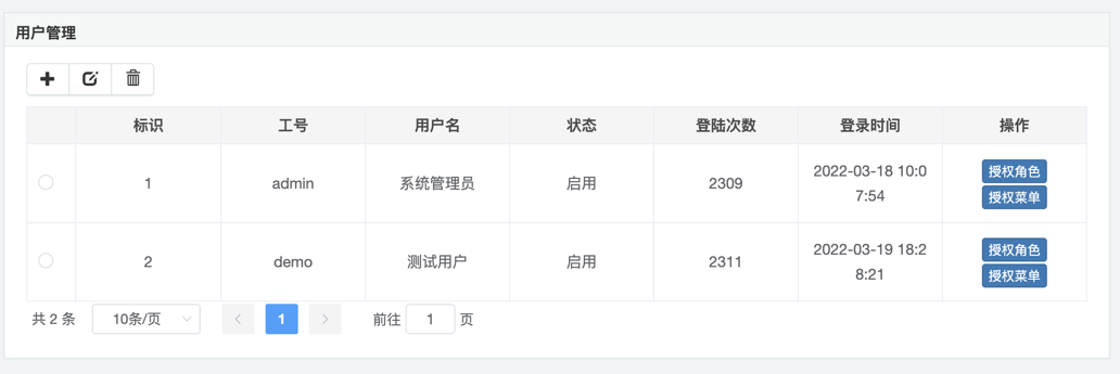 1.在系统菜单点击权限管理-用户管理菜单,系统进入用户管理页面。
