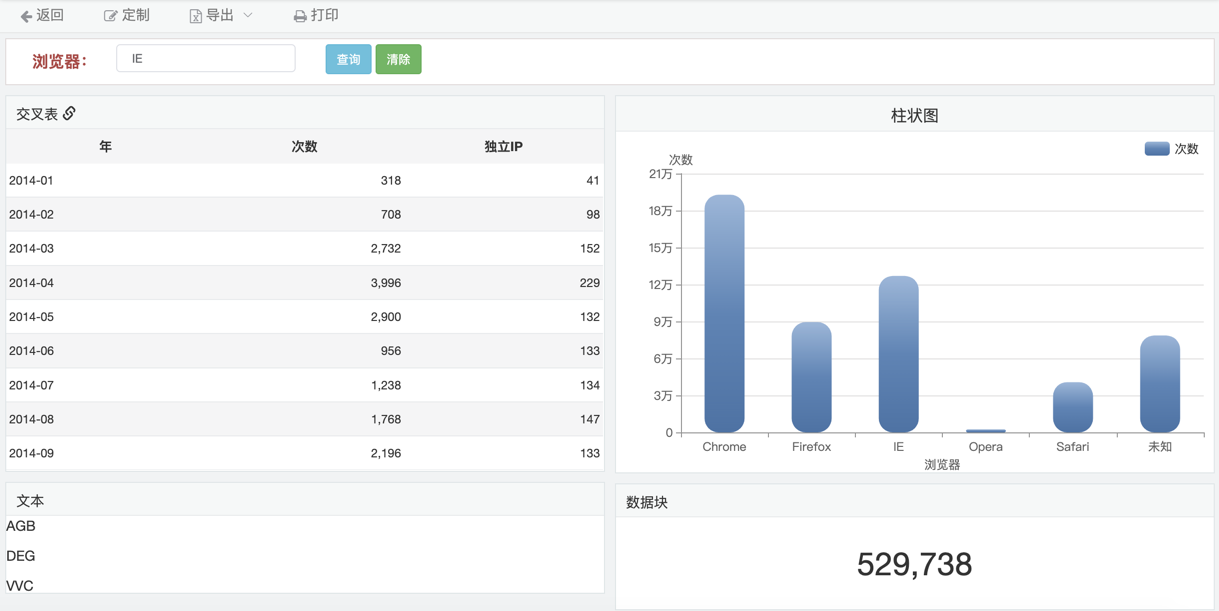 3.在查看报表页面,点击导出可以导出报表数据到Excel、PDF、WORD中,点击打印通过浏览器打印报表。