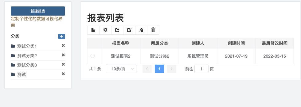2.在数据报表页面点击新建报表按钮,系统进入定制报表页面。