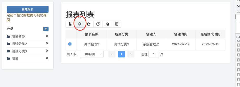 3.对于已有报表,先勾选报表,点击定制按钮定制报表。
