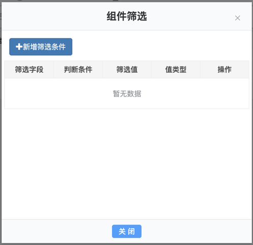 4.点击组件菜单中的筛选可以设置组建筛选条件。