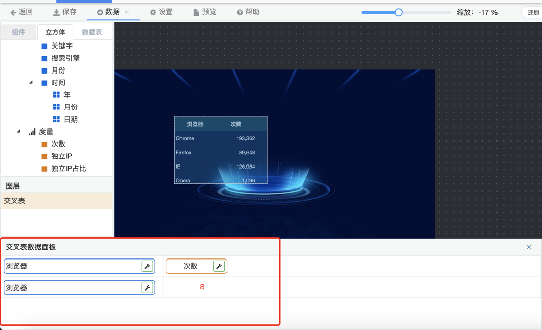 7.立方体数据区域,用来选择数据。