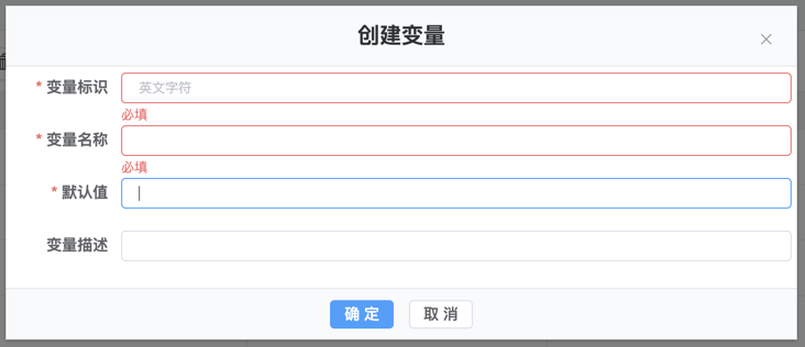 2.录入变量标识,变量名称,变量值等信息,点击确定按钮完成变量的创建。