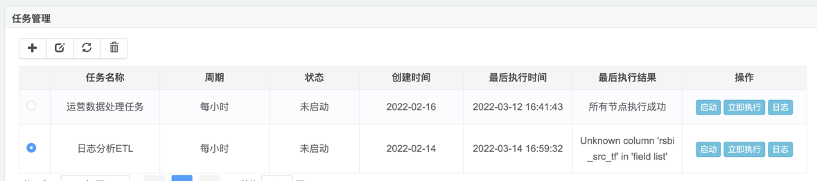 6.刚创建的任务并未启动,用户需要点击右边启动按钮启动任务。启动后点停止按钮停止任务执行。