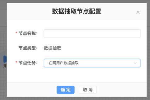 4.任务主要包括4类节点:开始节点、数据抽取节点、数据转换节点和结束节点。从左边拖拽节点到右边画布即可。拖入数据抽取节点或数据转换节点时,需要关联到具体的数据抽取、转换任务,如下图:
