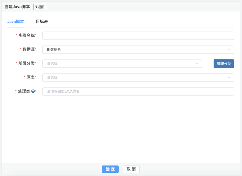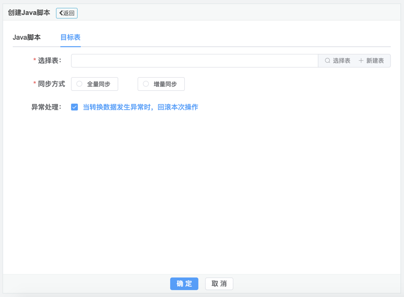 2.创建Java脚本对话框主要包括Java脚本,目标表两个选项卡,如下图: