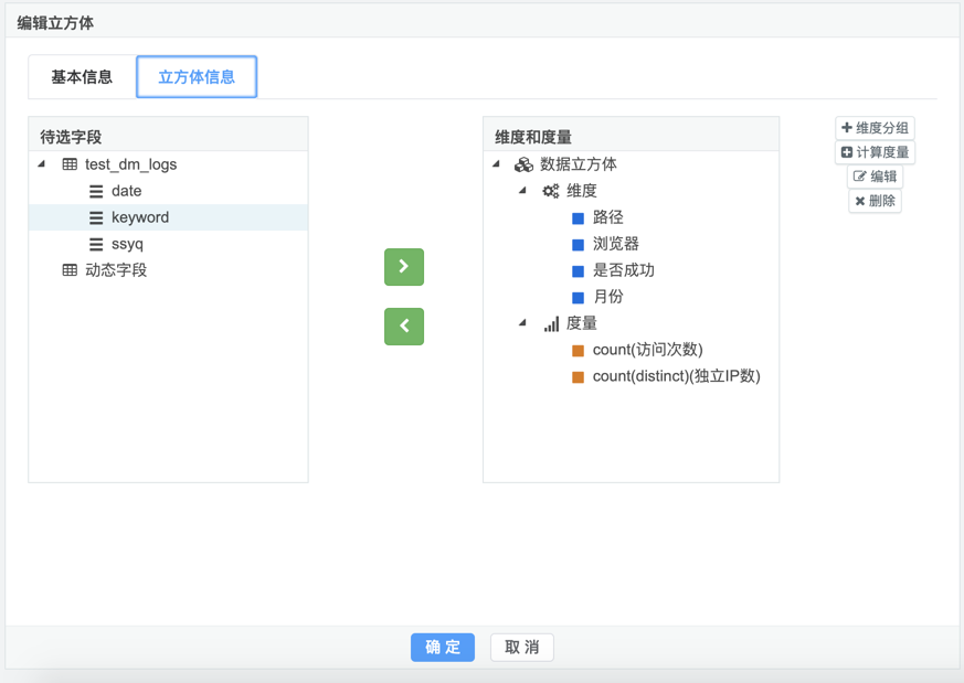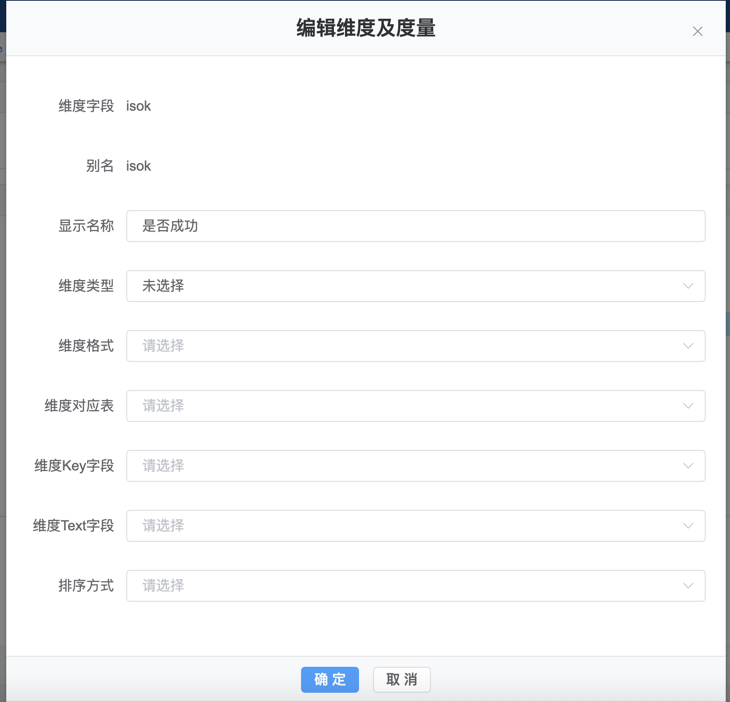 3.3) 双击已选的维度或度量,可以编辑维度或度量信息,如下图: