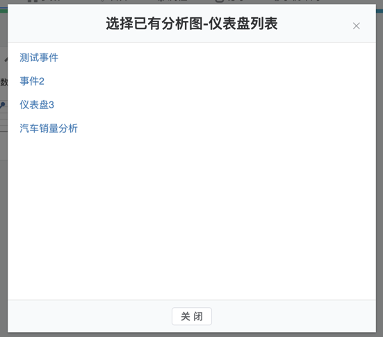 1.在仪表盘定制页面,点击分析图-选择已有分析图菜单,可以把以前创建的分析图直接选入当前仪表盘中,如下图: