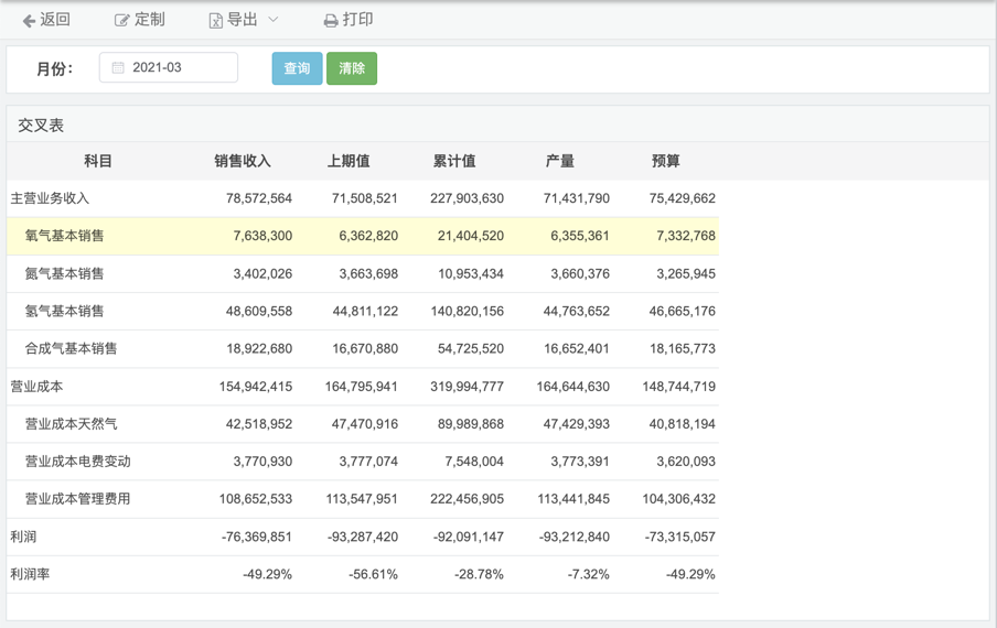6.采用相同方式创建营业成本、利润、利润率等数据的创建,创建完成后即可实现效果。