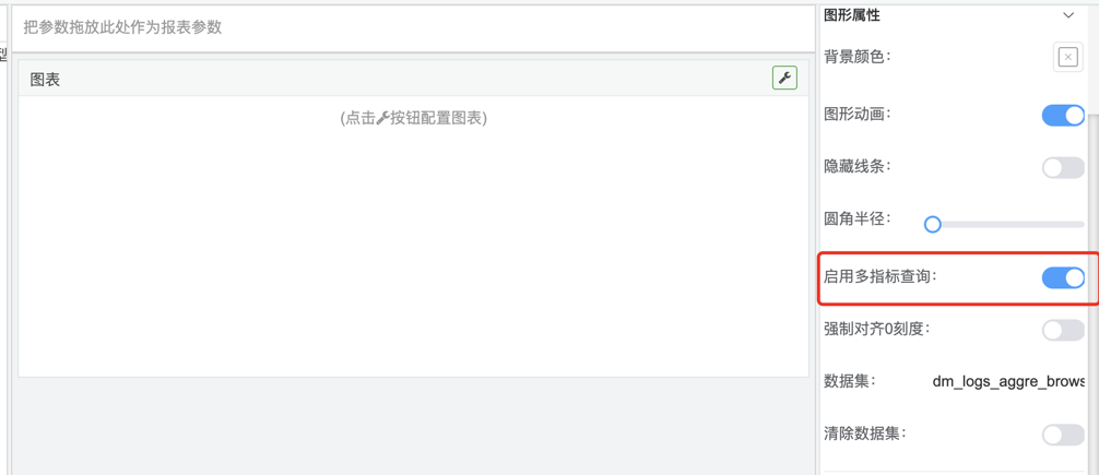 1.在图形组件上点击扳手按钮,选择属性菜单,在图形属性中启用多指标查询,如下图: